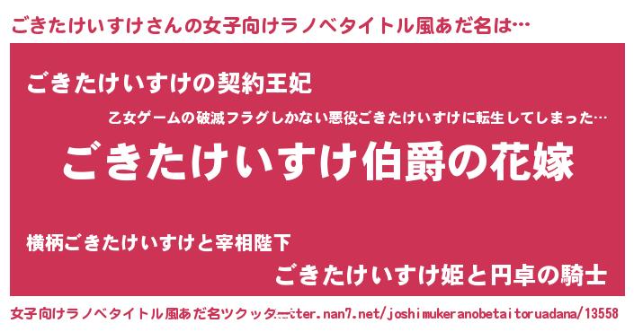 | 男性向けラノベタイトル風あだ名 | 『やはりごきたけいすけの青春ラブコメはまちがっている 』 |