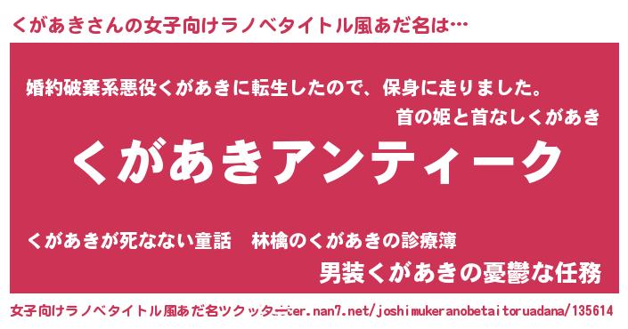 | 胡散臭い通販商品みたいなあだ名 | 『ガンによく効く高麗人参…その名も「くがあき」』 |