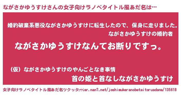 | 意味不明あだ名 | 『自称ながさかゆうすけ』 |