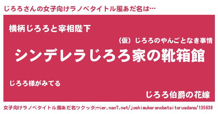 | 市区町村名 | 『じろ田谷区』『名古じろ市』 |