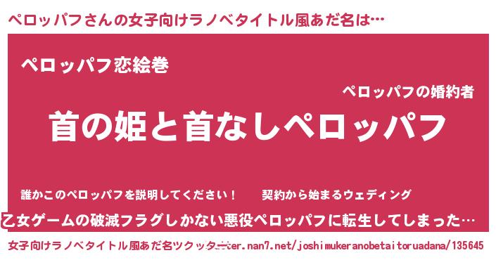 | 男性向けラノベタイトル風あだ名 | 『はたらくペロッパフさま!』 |