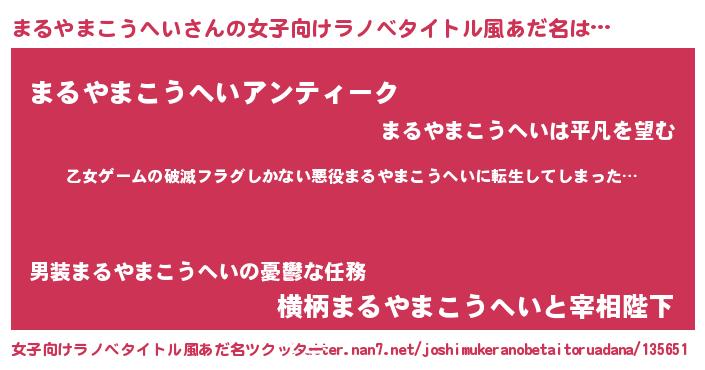 | 男性向けラノベタイトル風あだ名 | 『この素晴らしい世界にまるやまこうへいを!』 |