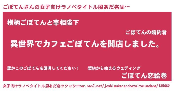 | 男性向けラノベタイトル風あだ名 | 『誰もが恐れるあのごぼてんが、ぼくの専属メイドになるようです。』 |