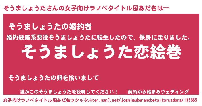 | 男性向けラノベタイトル風あだ名 | 『ノーゲーム・ノーソウマショウタ』 |