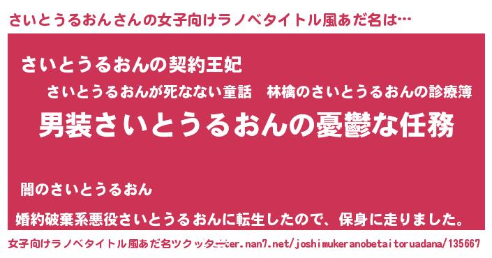 | ヘコむあだ名 | 『さいとうるおん(苦笑)』『さいを』 |