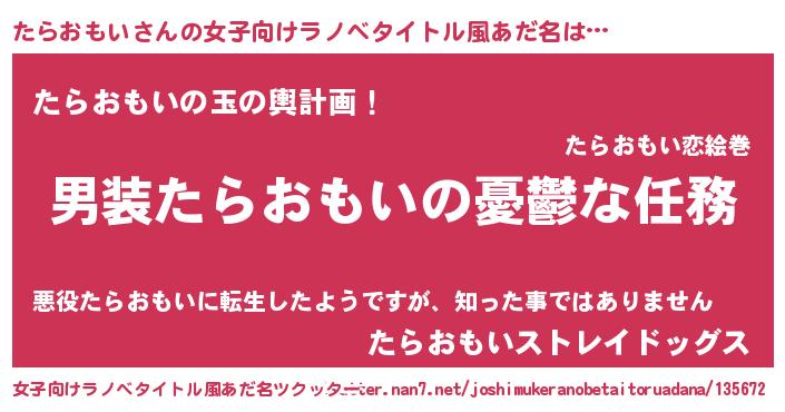 | 男性向けラノベタイトル風あだ名 | 『冴えないたらおもいの育てかた』 |