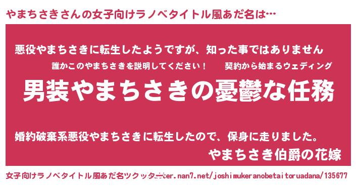 | 意味不明あだ名 | 『住所不定無職やまちさき(14歳)』 |