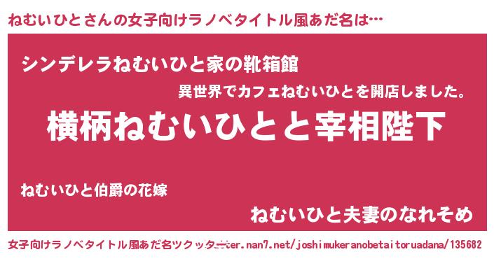 | 男性向けラノベタイトル風あだ名 | 『ねむいひとに滅ぼされるだけの簡単なお仕事です』 |