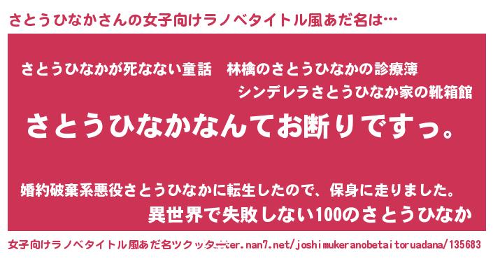 | 意味不明あだ名 | 『自称さとうひなか』 |