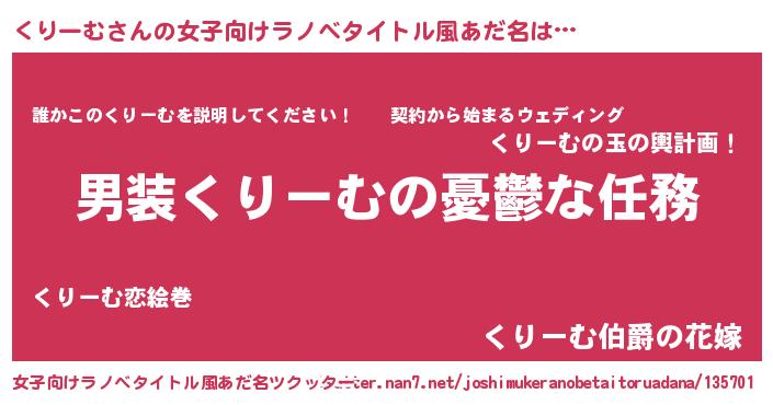| 男性向けラノベタイトル風あだ名 | 『うちのくりーむが世界を掌握している!』 |