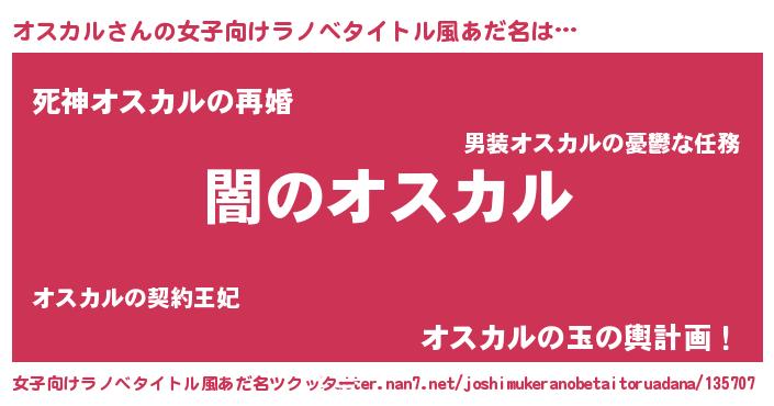 | 男性向けラノベタイトル風あだ名 | 『Re:オスカルから始める異世界生活』 |