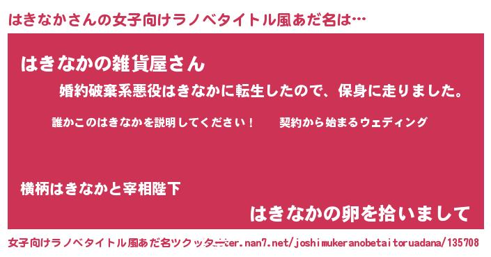 | 男性向けラノベタイトル風あだ名 | 『ハキナカアートオンライン』 |