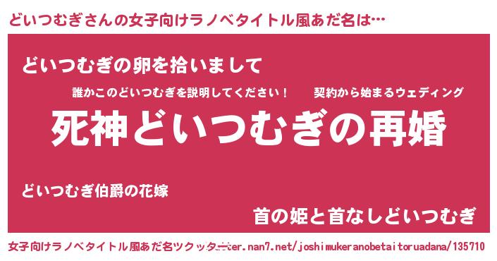 | 男性向けラノベタイトル風あだ名 | 『ノーゲーム・ノードイツムギ』 |