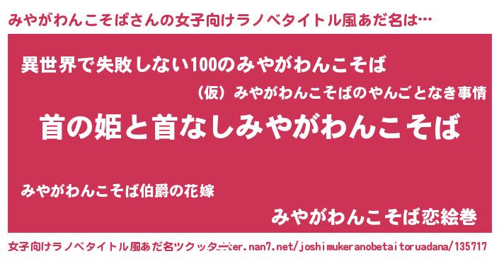 | ことわざ | 三つ子の魂100まで『三つ子の魂みやがわんこそばまで』 |