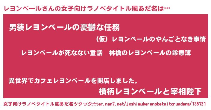| 意味不明あだ名 | 『住所不定無職レヨンベール(2歳)』 |