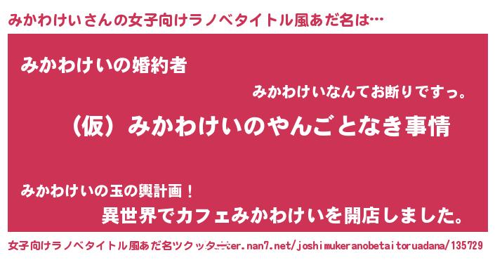 | 胡散臭い通販商品みたいなあだ名 | 『必ず成功する霊験あらたかなお札…その名も「みかわけい」』 |