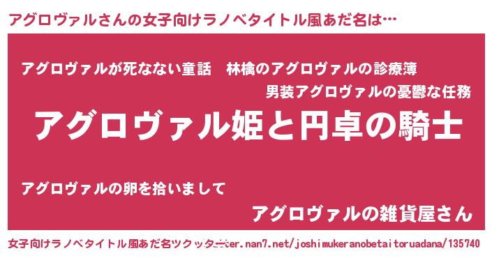 | 男性向けラノベタイトル風あだ名 | 『アグロヴァルの憂鬱』 |