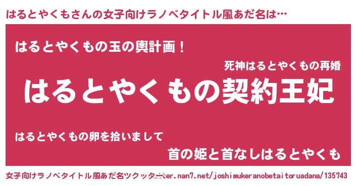 | 意味不明あだ名 | 『永久保存はるとやくも』 |