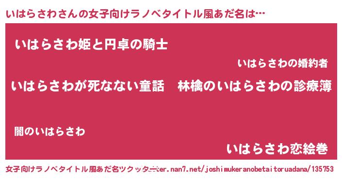 | 男性向けラノベタイトル風あだ名 | 『魔弾の王といはらさわ』 |