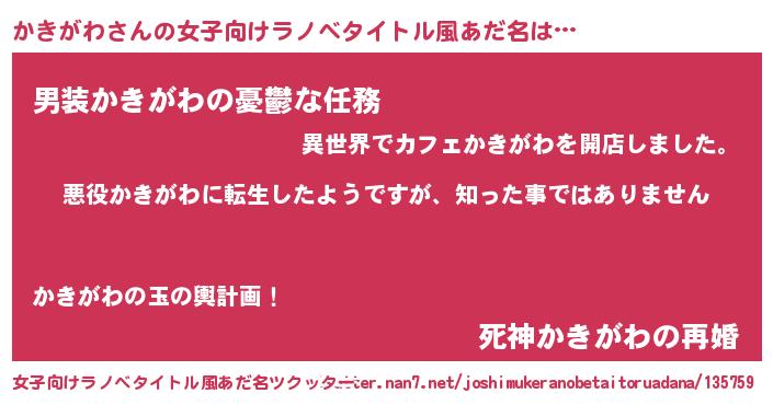 | 男性向けラノベタイトル風あだ名 | 『この素晴らしい世界にかきがわを!』 |
