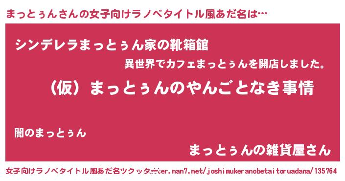 | 男性向けラノベタイトル風あだ名 | 『まっとぅんの憂鬱』 |