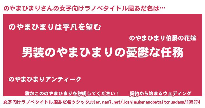 | 男性向けラノベタイトル風あだ名 | 『冴えないのやまひまりの育てかた』 |