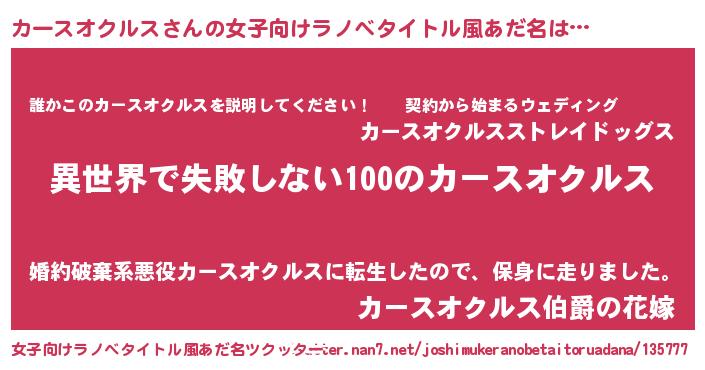 | 男性向けラノベタイトル風あだ名 | 『カースオクルスという概念が存在しない退屈な世界 』 |