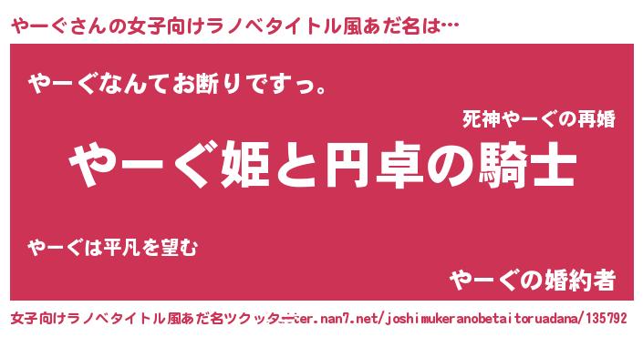 | 男性向けラノベタイトル風あだ名 | 『ヤーグアートオンライン』 |
