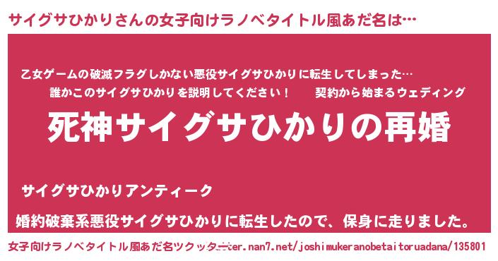 | 男性向けラノベタイトル風あだ名 | 『ノーゲーム・ノーサイグサヒカリ』 |