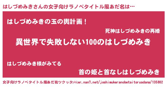 | 男性向けラノベタイトル風あだ名 | 『はしづめみきという概念が存在しない退屈な世界 』 |