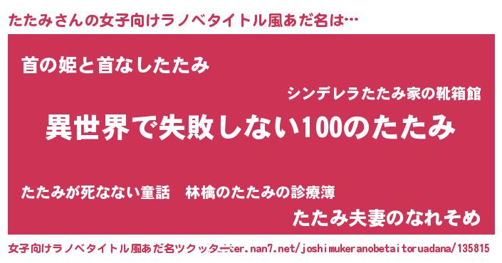 | 胡散臭い通販商品みたいなあだ名 | 『絶対に幸福をもたらす水素水…その名も「たたみ」』 |