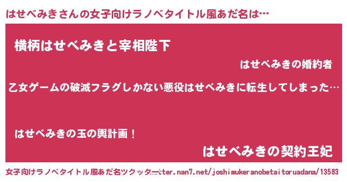 | 意味不明あだ名 | 『住所不定無職はせべみき(12歳)』 |
