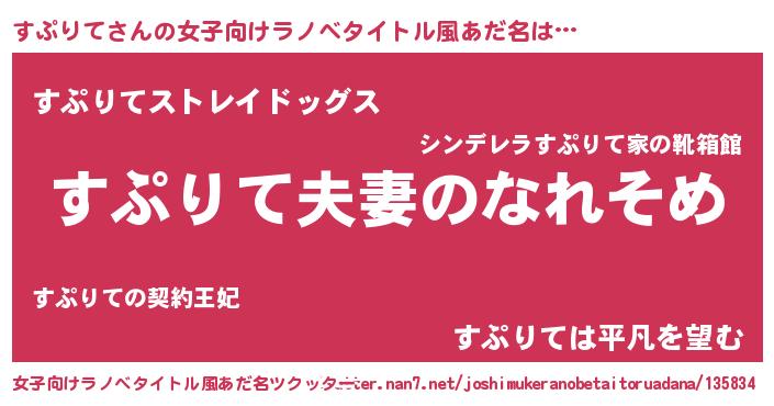 | 男性向けラノベタイトル風あだ名 | 『おまえをオタクにしてやるから、俺をすぷりてにしてくれ! 』 |