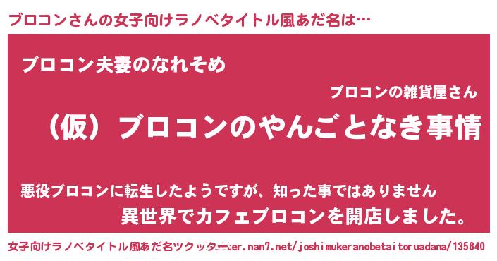 | 男性向けラノベタイトル風あだ名 | 『ブロコンの憂鬱』 |