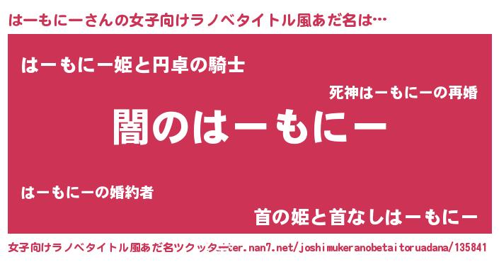 | 男性向けラノベタイトル風あだ名 | 『Re:はーもにーから始める異世界生活』 |
