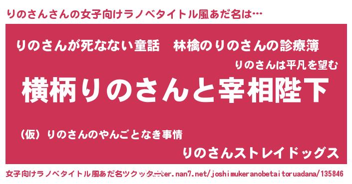 | 男性向けラノベタイトル風あだ名 | 『りのさんに滅ぼされるだけの簡単なお仕事です』 |