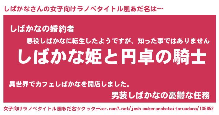 | 男性向けラノベタイトル風あだ名 | 『シバカナアートオンライン』 |