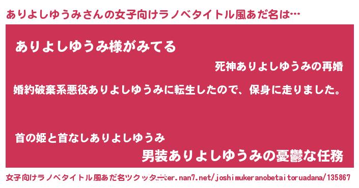 | 男性向けラノベタイトル風あだ名 | 『転生したらありよしゆうみだった件』 |