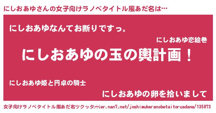 | 男性向けラノベタイトル風あだ名 | 『転生したらにしおあゆだった件』 |