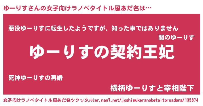 | 男性向けラノベタイトル風あだ名 | 『ゆーりすという概念が存在しない退屈な世界 』 |