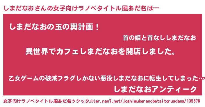| 胡散臭い通販商品みたいなあだ名 | 『前代未聞の水素水…その名も「しまだなお」』 |