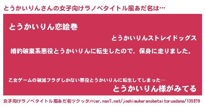 | ヒーロー風カッコイイあだ名 | 『友情の使者とうかいりん』 |