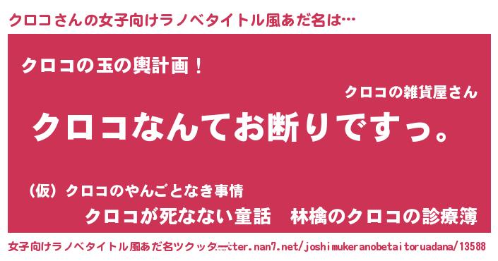 | 意味不明あだ名 | 『自称クロコ』『なめこ科クロコ属』 |