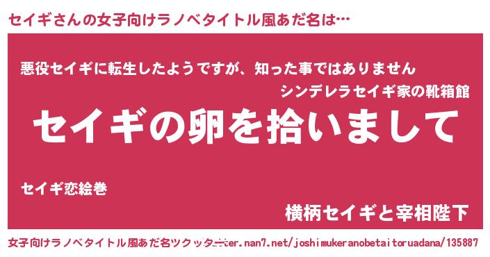 | ヘコむあだ名 | 『セイっぺ』『セイにー』『酢こんぶ』 |