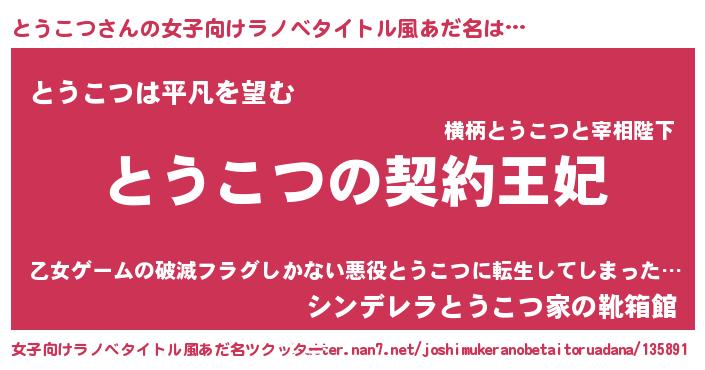 | ヘコむあだ名 | 『とうこつ(笑)』『とうぷりん』 |