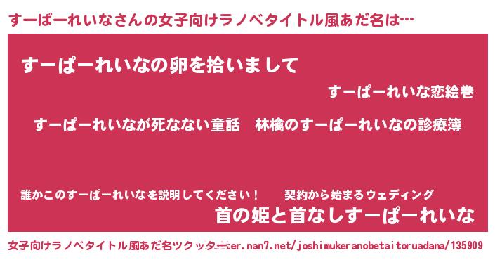| 胡散臭い通販商品みたいなあだ名 | 『ハリウッド女優が絶賛した世界で10本だけ現存している希少なブランデー…その名も「すーぱーれいな」』 |