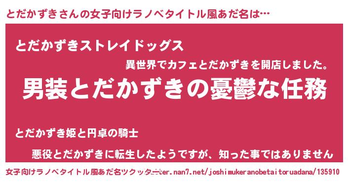 | 意味不明あだ名 | 『自称とだかずき』『永久保存とだかずき』 |