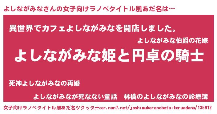 | 男性向けラノベタイトル風あだ名 | 『ヨシナガミナアートオンライン』 |