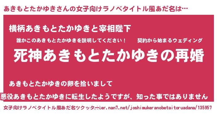 | ヒーロー風カッコイイあだ名 | 『慈愛の使者あきもとたかゆき』 |