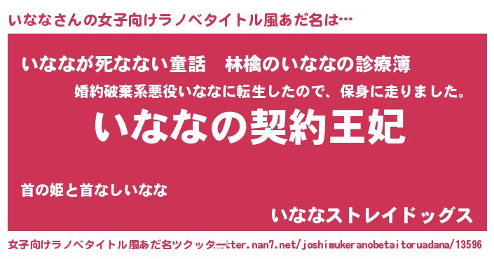| ファンタジー風あだ名 | 『イナディッシュ』『ヴァルイナーナ』 |